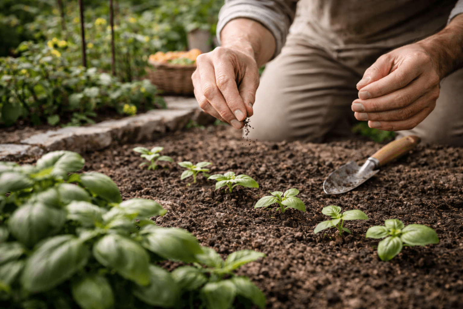 Même si la plante elle-même ne survit pas à l’hiver, le basilic peut revenir au printemps grâce à ses graines. Si vous avez laissé votre basilic fleurir à la fin de l’été, de petites graines noires ont pu se former. Une fois tombées au sol, elles peuvent rester en dormance dans la terre pendant plusieurs mois. Puis, avec le retour de températures douces au printemps, certaines germent spontanément, surtout si le climat est favorable.